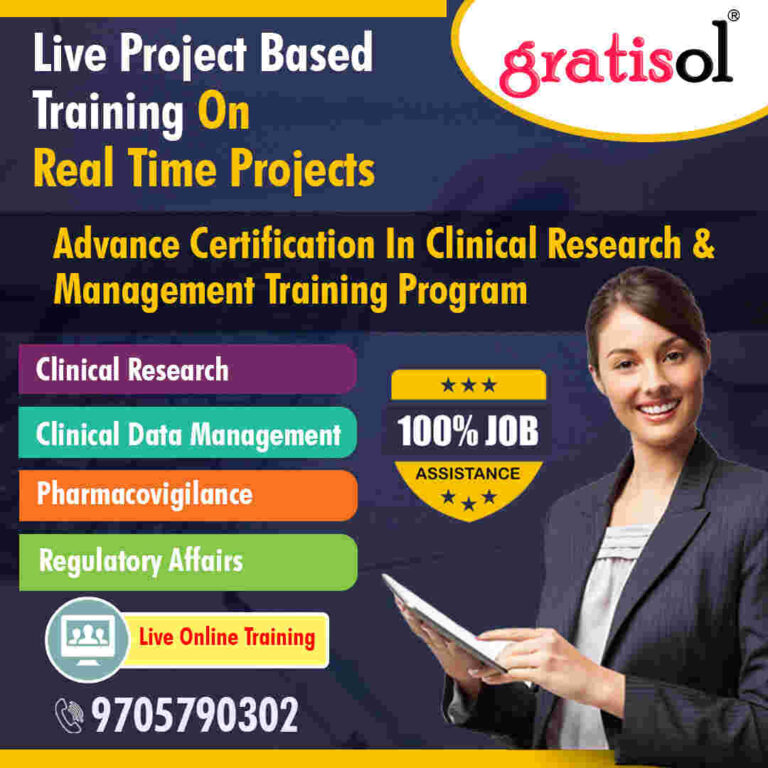 Gratisol Labs is a leading Clinical Research Institute Offering Clinical Research Course,Pharmacovigilance Course,Clinical data Management Course,SAS Course,Medical Writing Course and Regulatory Affairs Course.. We offer Clinical Research Training program. This Advance Certification Clinical Research course also covers Pharmacovigilance Training, Clinical Data Management training, SAS Training. Medical Writing training and Regulatory Affairs course. We offer clinical research Certification Program also offers Clinical research Job Opportunities as Clinical Research Associate and Clinical Trials Associate. For CRA Training program the candidate should have B.Pharmacy,M.Pharmacy,Life Sciences ,Microbiology,Biotechnology,Chemistry. BPT,BDS and BHMS Also eligible for Clinical Research training program. For B.Pharmacy and M.Pharmacy the pharmacovigilance course is best suitable course. The pharmacovigilance training in Hyderabad at gratisol imparts both theoretical and Practical with hands on experience on Argus database and Meddra Medical browsers thus the reason gratisol is considered as the best pharmacovigilance institutes in Hyderabad within the Pharmaceutical, Biotechnology and Medical Device industries to both experienced professionals and entry level candidates.