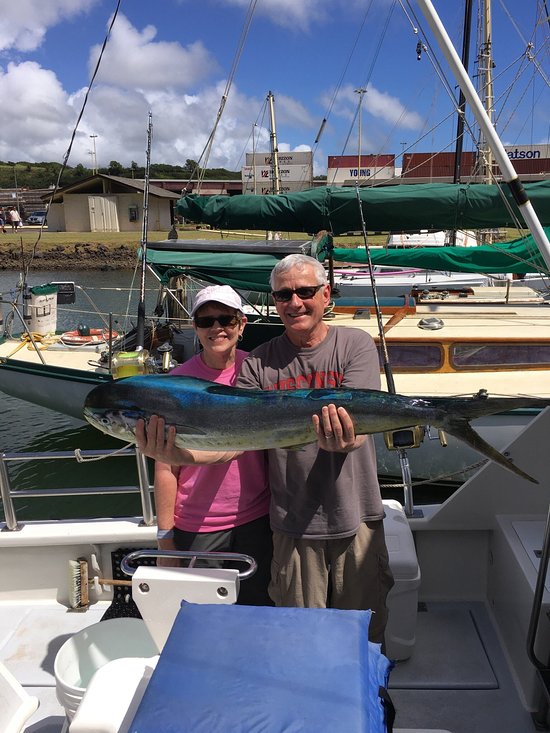Join the Captain and Crew of the Lahela for an exciting, action packed day of fishing. Whether you are a beginner or an experienced angler, you will feel like part of our Sportfishing Team from the very beginning. Prior to leaving the dock, the Captain and Crew will go over your expectations for the day and an explanation of the techniques that we will be using. The Lahela is the only Coast Guard Certified Sport fishing game boat on Kaua’i that can legally carry more than 6 passengers up to 14 passengers.